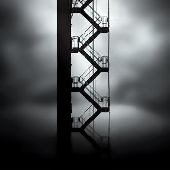 At the top of the stairs
